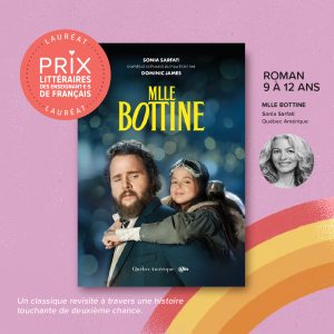 - Dans la catégorie « Roman 9-12 ans » : Mlle Bottine de Sonia Sarfati (Québec Amérique). Ce qu’en dit le jury : « Un classique revisité à travers une touchante histoire de deuxième chance. »